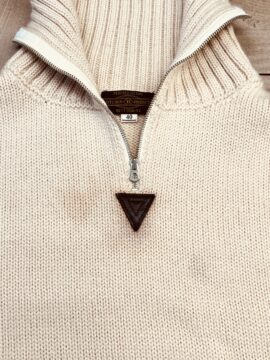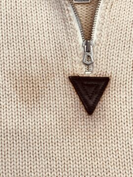 セーターに革の色が打ち合っています。革に着色した顔料が洗濯して色が移ってしまったようです。