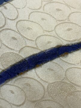 画像に見えるように、金彩を施した柄に沿って生地の破れが見受けられます。